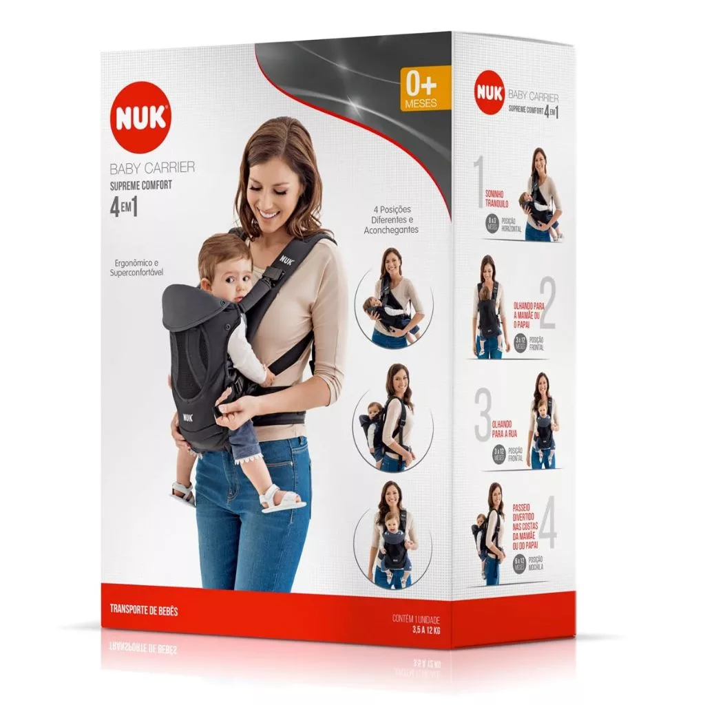 Carregador de Bebê Canguru Supreme Comfort 4em1 Nuk é uma forma de transportar os bebês em 4 diferentes posições: soninho tranquilo, olhando para a família, olhando para rua e passeio divertido nas costas. O canguru possui cinta para o apoio lombar, para maior apoio, conforto e proteção. As travas de segurança foram desenvolvidas de forma que apenas adultos consigam manipulá-las. Para maior conforto o apoio de cabeça com capuz protege e garante a privacidade do bebê.