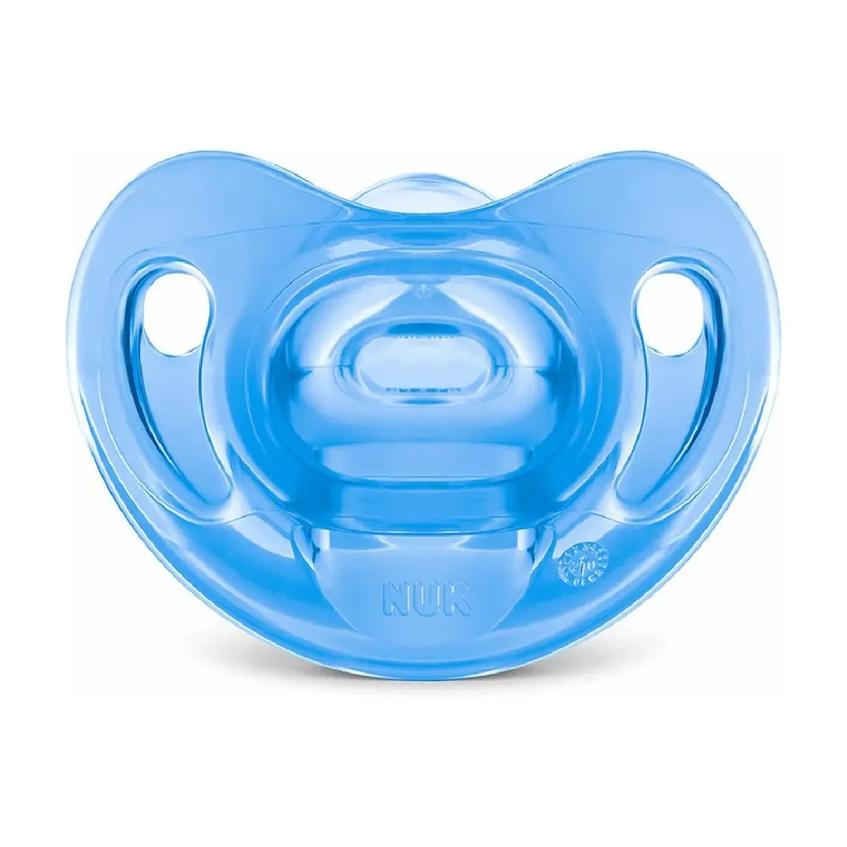 Chupeta Nuk Sensitive Soft 100% Silicone com bico em formato anatômico foi desenvolvida em 100% silicone soft flex extra macio, com design moderno em peça única, alça integrada para evitar perdas e cores agradáveis. Seu formato contorna o rosto do bebê de maneira suave sem cobrir o nariz do pequeno facilitando a respiração.